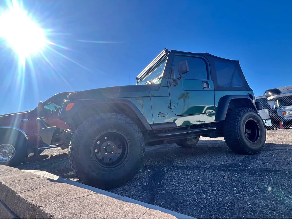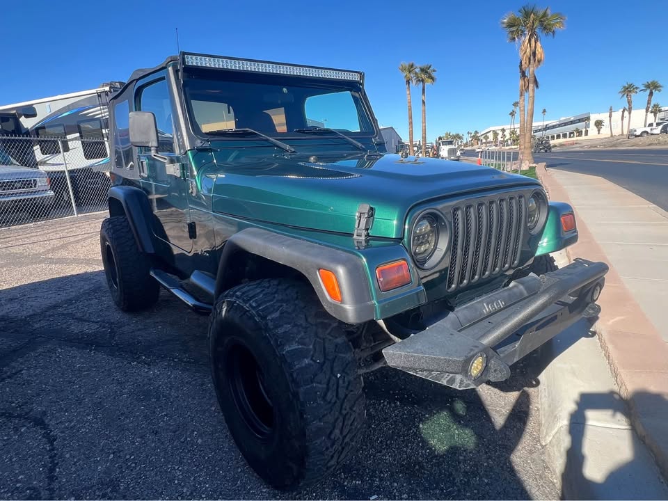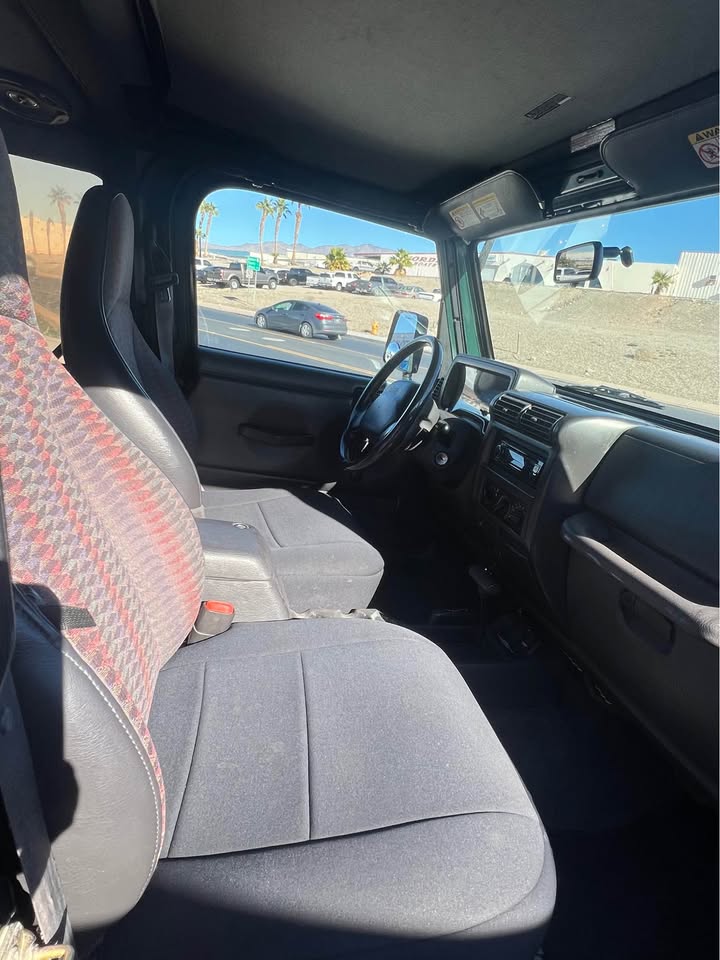 15 Two door, 4.0 straight 6 cylinder, soft top, AT, 4×4, low miles only 59k, stereo system, Power steering, light bar, spare tire. Suspension is good and rides and drives nice. Rebuilt title due to minor fender damage that was repaired. No frame damage and has not been rolled.