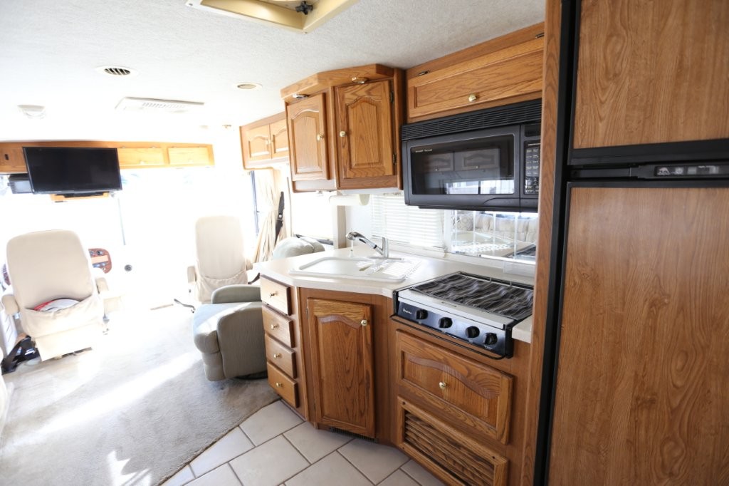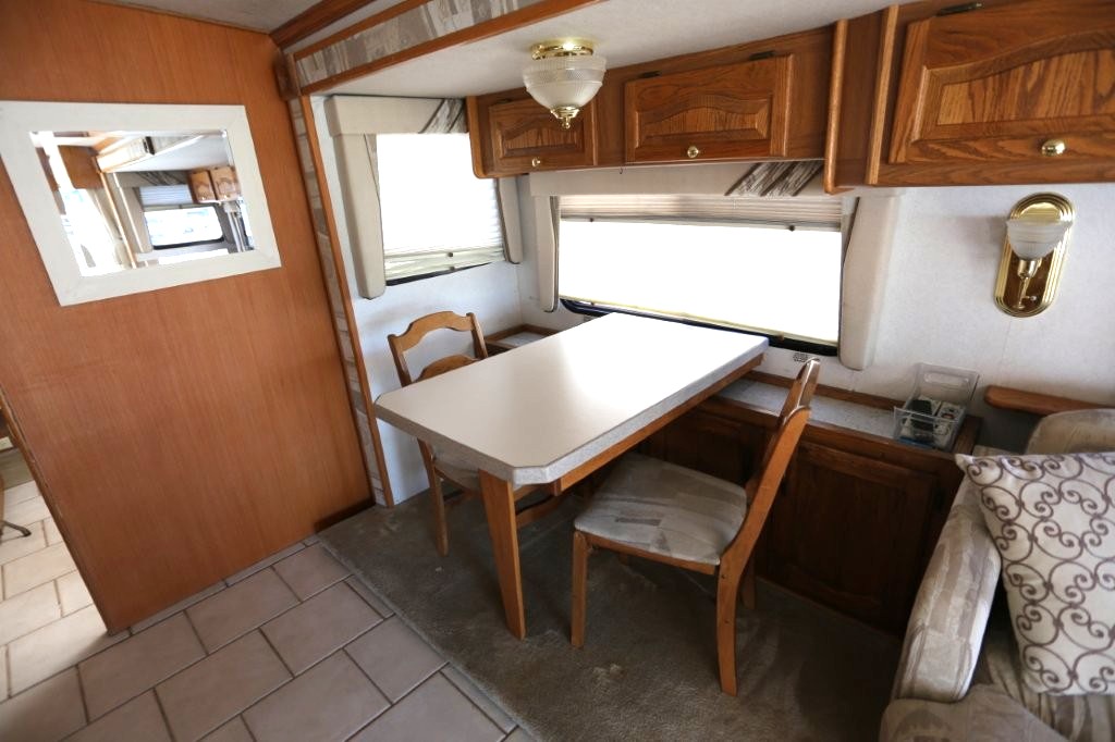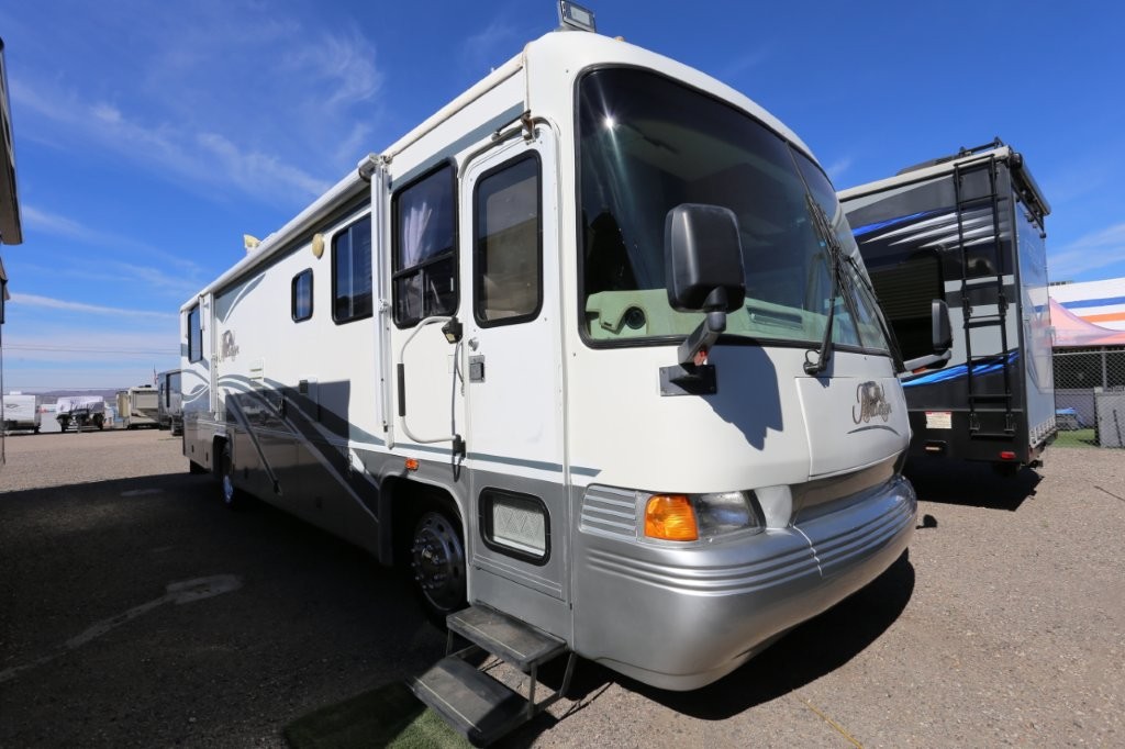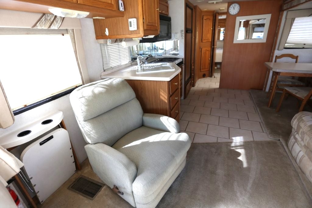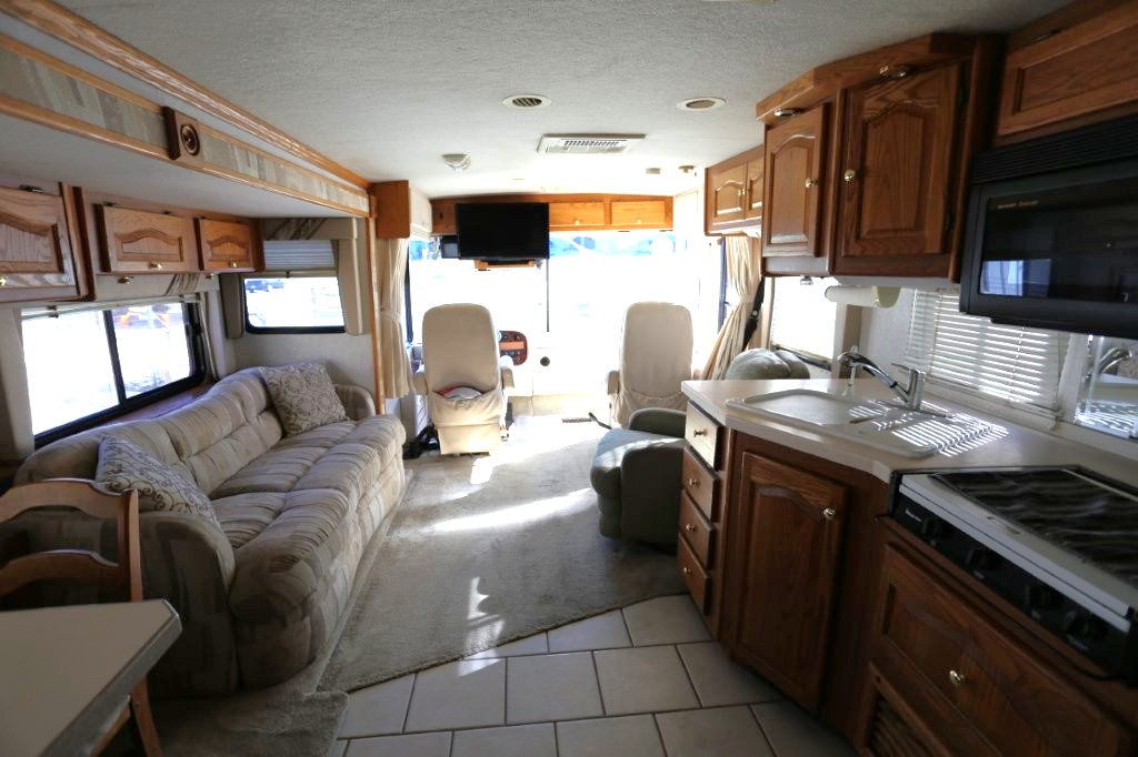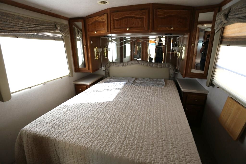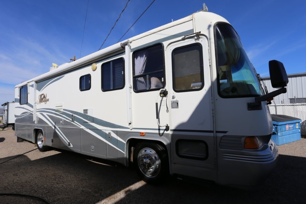 2001 Tiffin Motorhomes Phaeton 35RH, Class A Diesel Pusher motorhome with one slide and 106,227 miles. This is a luxurious, quality unit with high-class amenities. It is furnished with Flexsteel furniture, hardwood raised panel cabinet doors, solid surface countertops, ceramic tile flooring, Scotchgard-treated carpeting, and day/night pleated shades.